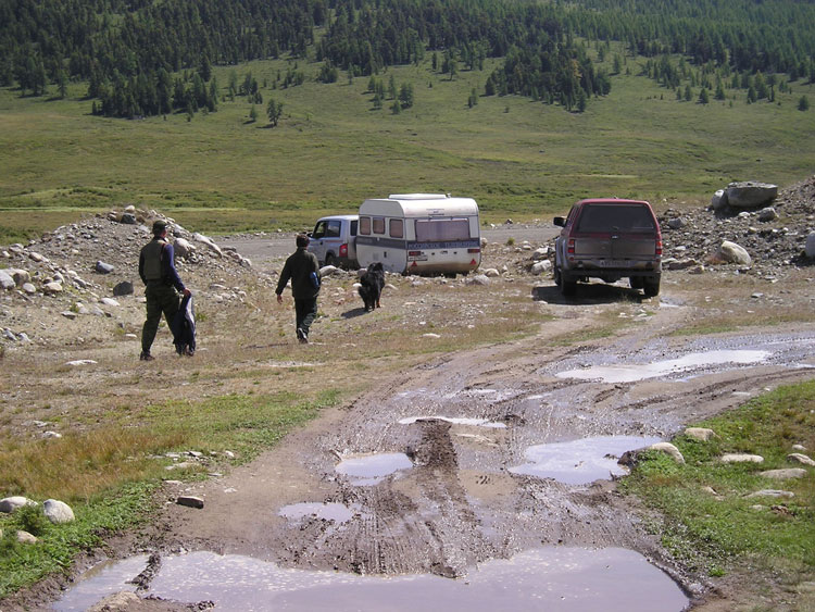 Итак, без малого четыреста километров по безлюдной горной дороге, с редкими населенными пунктами и еще более редкими заправками. Не доезжая всего несколько десятков километров до Российско-Монгольской границы, мы съезжаем с асфальта на горный проселок. С этого момента мой автомобиль превращается в альпиниста, с кибиткой вместо рюкзака за плечами.