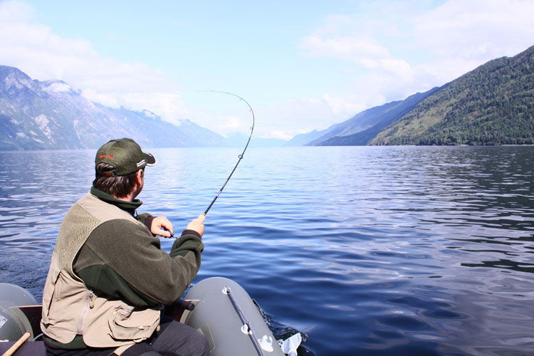 С легкой самоиронией оглядываю ближайший десяток километров вокруг себя. Почесав затылок, направляю свой надувной катер к наиболее обрывистому берегу. Он сильно зарос цепляющимися корнями за скалы лиственницами. Расчет прост, есть деревья – есть насекомые. Есть насекомые – есть несчастные случаи падения в воду. Есть упавший в воду – значит надо его съесть. Подбор насекомых с поверхности воды всегда сопровождается с активной работой хвоста и плавников. Активность отражается на боковой линии хищника, и он выходит на охоту. Тут то я такой умный ему наш воблер SSV и подкину. Ну а перед надписью «SSV» на теле воблера не устоит ни один «телецкий» хищник. Все бы хорошо, но повидимому, здешняя рыба грамоте не обучена и часа два я старательно облавливал своими воблерами один перспективный участок за другим. Меняю проводку, приманки, налаживаю контакт…