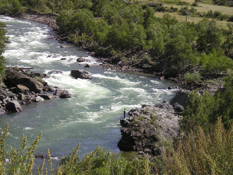 Не случайно Чулышман относится к одной из рек высшей категории для водного сплава. В верхнем и среднем течении реки множество «непроходных» порогов и водопадов. Ближе к низовьям, где нам и предстоит ловить, река уже поспокойней, хотя, при беспечном подходе, может доставить массу неприятностей.
