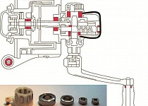 Механизм представляет собой некое подобие большого роликового подшипника. При выключенном положении механизма он в работе не участвует. При переключении флажка в рабочее положение ролики выдвигаются и вступают в контакт с обоймой ротора, вращаясь на месте. При начале движения ротора в обратную сторону ролики встают в распор, надежно фиксируя ротор и не давая ему обратного хода. При применении этого механизма есть общая ошибка. Многие используют его постоянно при ловле рыбы. Однако этот механизм не рассчитан на постоянную работу и применять его следует только при борьбе с рыбой. Именно при вываживании крупной рыбы червячный механизм испытывает множественные ударные нагрузки, от которых его и защищает механизм стопора обратного хода.