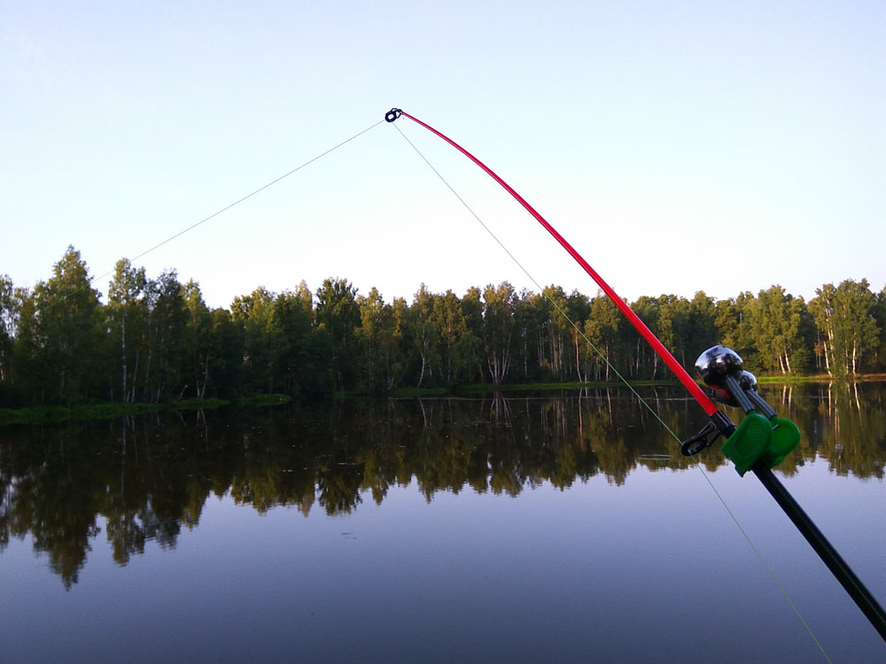 Прошлым летом я тестировал данную снасть в Подмосковье. Заросшие старые торфяники. По берегам плотная стена кустарника вперемежку с поваленными берёзами. Есть лишь небольшие окна для заброса. Использование длинных удилищ невозможно. Для ловли я использовал бюджетный вариант снастей. Спиннинг URAGAN SPECIAL 2,1 m, катушка TRIP REEL, плетёный шнур TAIFUN Line хакки 0,11mm (желательно использование безузловой застёжки). Ввиду ограниченного места, «тяжелого» дна заросшего водоёма, спиннинг приходилось ставить вертикально и в качестве сигнализатора поклёвки использовать бубенчики с прищепкой. Для "ходовой" рыбалки (или рюкзак-велосипед), хорошо подходит лёгкое, компактное, прочное телескопическое удилище POWER CARBON, с которым я использую надёжную катушку TSUNAMI PROFESSIONAL.