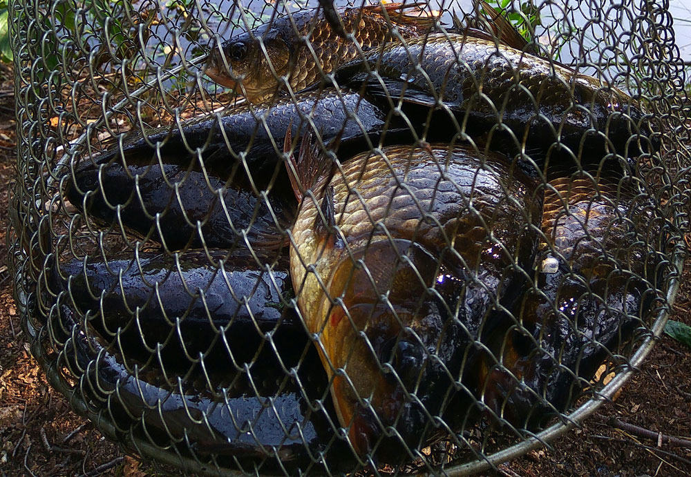 - Вчера был на рыбалке, обловился! Карасиками почти полный садок набил!