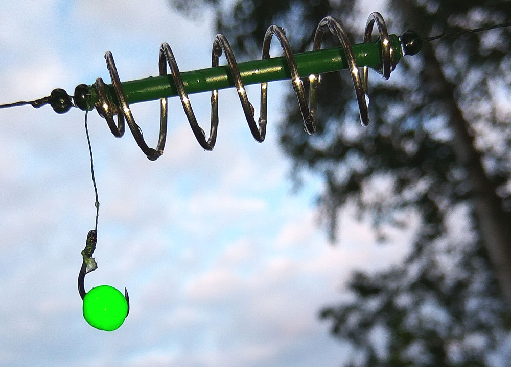 - вариативность применения. Можно ловить целенаправленно на 2-3 удилища. Или, например, ловить поплавочной удочкой, а рядом забросить данную снасть. Нет необходимости постоянно следить за бубенчиком. Поклёвку вы не прозеваете! Можно использовать как снасть-разведчик, с целью определить предпочтения к ароматам в конкретный день в конкретном месте.
