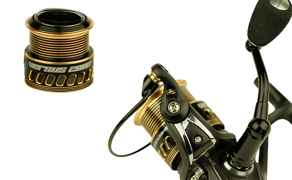 стуки механизма под нагрузкой, создает дополнительную жесткость механизма, увеличивает ресурс. На модели VERSUS 1000-4000 использованы шпули увеличенного диаметра и уменьшенной лесоемкости, что позволяет использовать более тонкие шнуры и способствует дальности заброса.