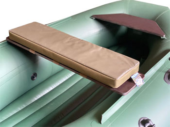 в лагере, как туристическая мебель. Устанавливается в лодку, до надувания, и после надувания, встает крепко в распор между бортами. Рекомендуем накачивать не сильно, так удобней сидеть.
