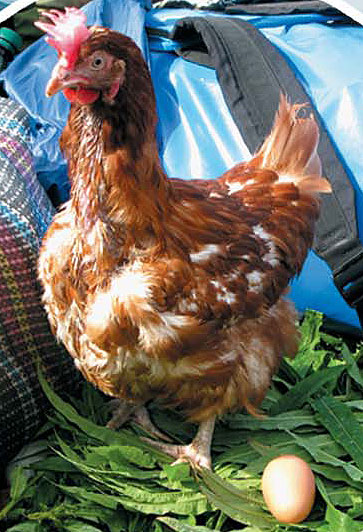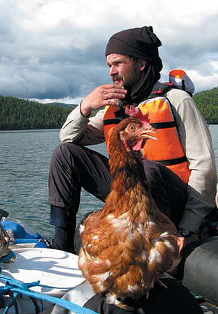 На следующий день забрали в поселке мотор, оставленный на хранение. Закупили продукты и приобрели... живую курицу. Курочка оказалась очень спокойной и даже ела с рук. Решили назвать ее Катей. В лагерь она приехала верхом на рюкзаке Сержа, чем привела всех в несказанное умиление. Андрей Артурович, тем не менее, и глазом не моргнул:
