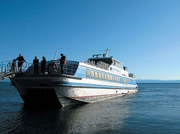 встретиться в Иркутске перед вылетом. Путешествие на огромном 120-местном судне на воздушной подушке «Баргузин» предоставило нам уникальную возможность полюбоваться красотами ольхонских мысов и скал, Малым морем, Ольхонскими воротами и массой удивительных бухточек по всему западному побережью Байкала. В Листвянке стали свидетелями землетрясения. По словам сотрудников Байкальского музея, в поселке было 6,5–7 баллов по шкале Рихтера. А в эпицентре — неподалеку от п. Култук — 9 баллов! Сам эпицентр находился где-то в глубинах Байкала, но в домах жителей поселка разрушились все печные трубы! В Листвянке временно пропала связь, электро и водоснабжение. В Байкальском музее есть аквариумы с омулем, хариусо