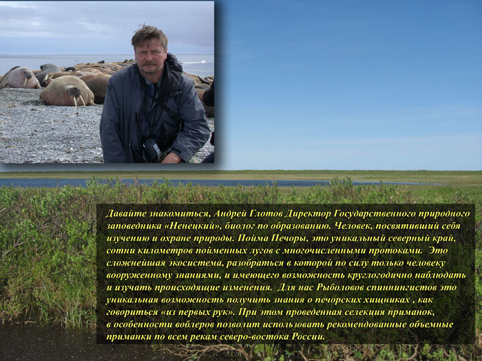 И всё же как-то я решился, уже вновь занявшись рыбалкой, задать вопрос своему другу, Директору Государственного Заповедника «Ненецкий» Андрею Степановичу Глотову вопрос касательно изучения возможности половить там рыбу. Моя неизбывная, ещё с детства, страсть к охоте на щуку была в дельте Волги немного утолена, но размеры рыбы – увы! Они перестали впечатлять, а собственно борьба с щукой из предполагаемой превратилась в нудное вываживание одной за другой. Без всяких усилий. Измельчала тамошняя щука, а хотелось, начитавшись журналов о поимке крупных щук, найти новое место. И попытаться половить «монстров»!
